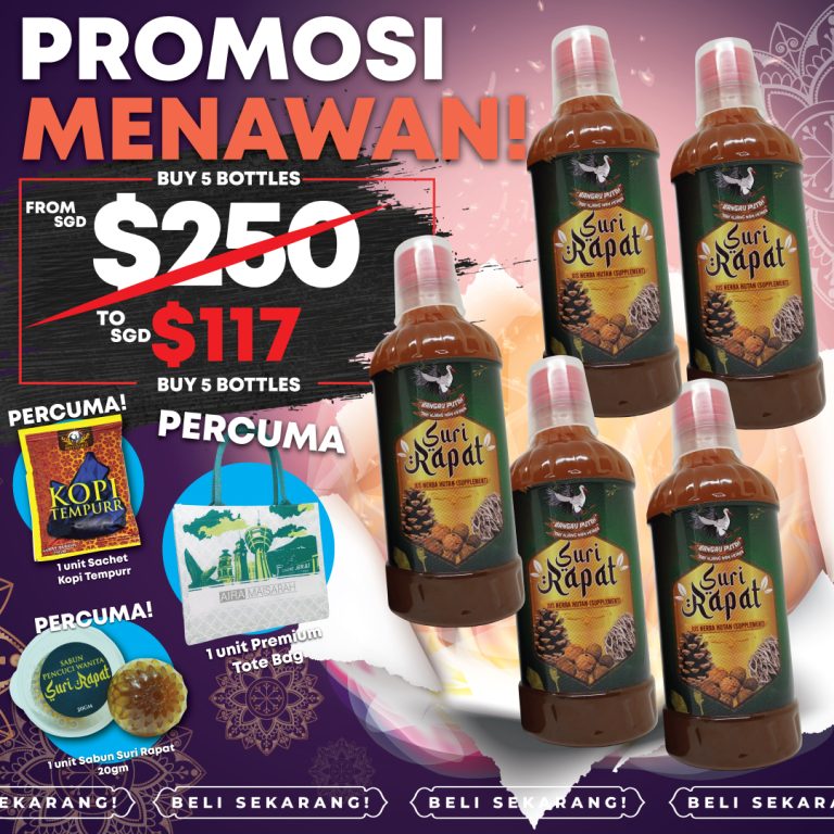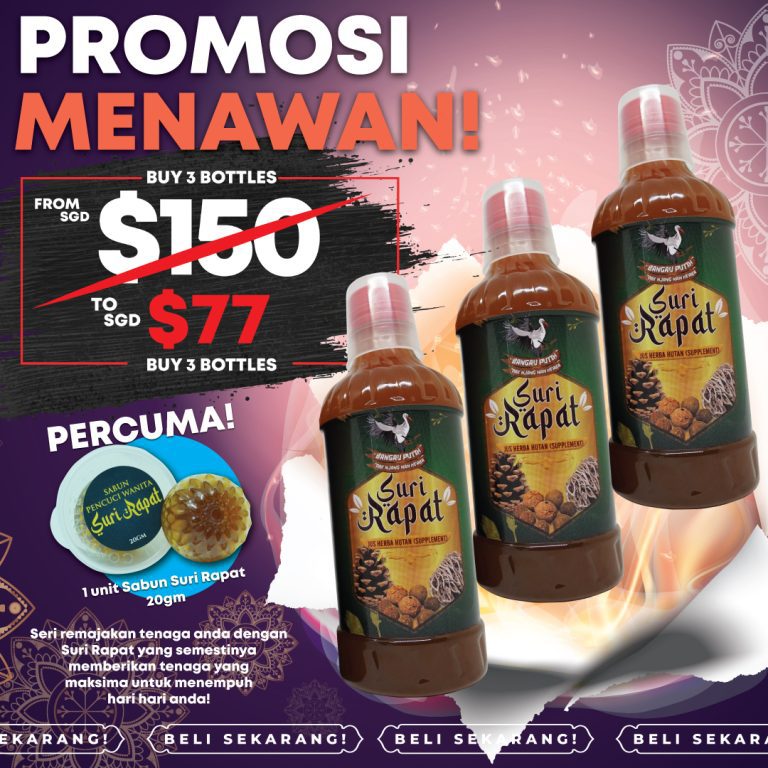 Jus Suri Rapat disediakan secara tradisional dan dimasak sendiri. DIJAMIN selamat dan TIADA bahan terlarang atau bahaya. Bagi memastikannya, Jus Raja Tempur telah di buat Lab Test dan terbukti TIADA bahan-bahan bahaya.